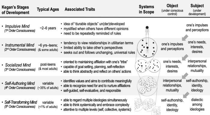 在螺旋动力学和自我发展的9个阶段模型中,他们显示约有50%的人口处于顺从发展阶段。这意味着一半的人口缺乏真正能动性的认知发展。